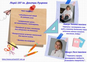 - 68 вчителів, серед яких 48 мають «Вищу категорію», 35 – звання «Вчитель-методист», 7 – «Старший вчитель», 8 – «Першої категорії», 5 – «Другої категорії», 1 – “Вихователь-методист”, 1 – «Старший вихователь” , 1- “Провідний спеціаліст”, 7 – спеціаліст.
