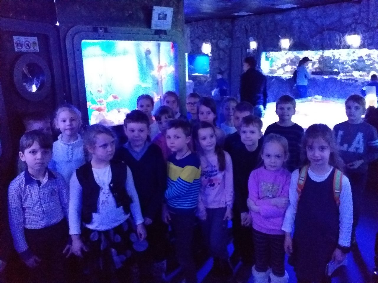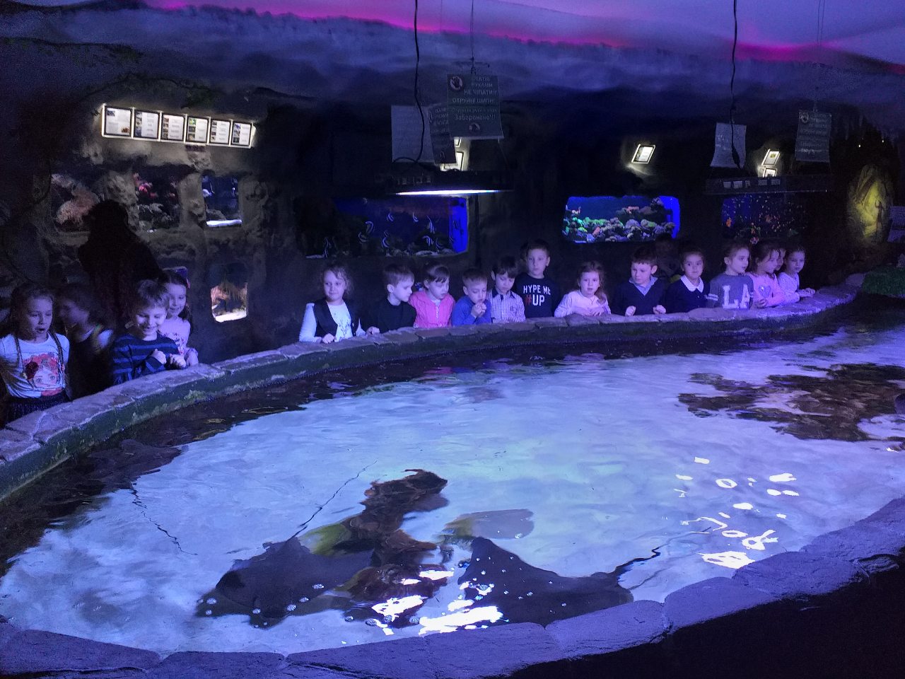 Учні 1-А класу відвідали океанаріум “Морська казка”. Діти ніби потрапили в підводну стихію: спокійна музика, ілюмінація і велика кількість морських жителів- черепахи, морські зірки, мурени, медузи, морські їжаки, скати…